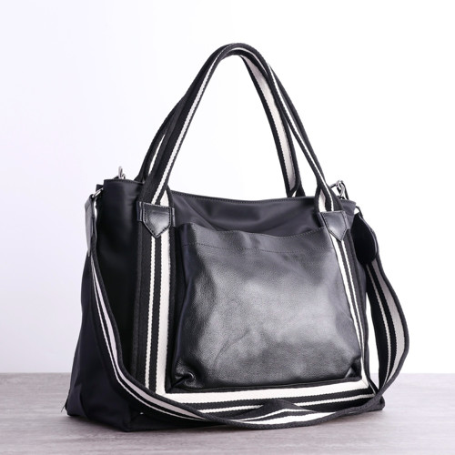 Three Strap Women Nylon Bags Black Cowhide Travel Bag Images |